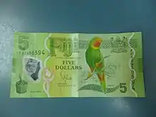 لم تعد صورة الملكة إليزابيث الثانية تظهر في سلسلة الأوراق النقدية الجديدة. لم تعد الورقة النقدية بقيمة 2 دولار ، التي تمت صياغتها الآن ، بمثابة مناقصة قانونية في 31 مارس 2013 ، وطُبعت الآن فئة 5 دولارات باللون الأخضر ، وهو تغيير عن نظام الألوان البني والبني السابق. الورقة النقدية الجديدة بقيمة 5 دولارات ، وهي أول ورقة نقدية من سلسلة تصميم "فلورا وفاونا" ، دخلت حيز التداول في 2 أبريل 2013.
