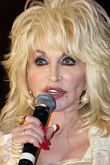 تُعد دوللي ريبيكا بارتون (ولدت في 19 من يناير، عام 1946م[11]) مُغنية وكاتبة أغاني أمريكية، ومؤلفة، وعازفة للعديد من الآلات، وممثلة، ومُحْسِنة، وهي معروفة بعملها في موسيقى الريف. وقد ألّفت أكثر من 3000 أغنية،[12] أشهرها يتضمن أغنية "سأظل دائمًا أحبك" (I Will Always Love You) (وقد احتلت الولايات المتحدة الصدارة مرتين لأجل بارتون، بالإضافة إلى أغنية البوب الشعبية الدولية لأجل ويتني هيوستن)، و"جوليني" (Jolene)، و"معطف من العديد من الألوان" (Coat of Many Colors)، و"9 to 5"، و"بلدي جبل تينيسي" (My Tennessee Mountain Home). وكممثلةٍ، فقد تألقت في أفلام 9 to 5، وأفضل أصغر بيت دعارة في تكساس (The Best Little Whorehouse in Texas)، ومانغوليا الصلبة (Steel Magnolias)، وGnomeo & Juliet، ونقاش على التوالي (Straight Talk)، وUnlikely Angel، والضوضاء البهيجة (Joyful Noise). هي واحدة من أكثر الفنانات نجاحًا في الدولة في كل العصور؛ مع ما يقرب من 100 مليون في مبيعات الألبوم، تُعَد دوللي بارتون أيضًا واحدةً من الفنانين الأكثر مبيعًا في كل العصور.[13] تُعرَف باسم "ملكة موسيقى الريف".
