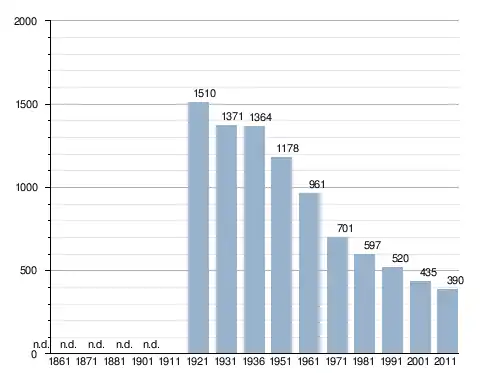 في سنة 1871 بلغ عدد السكان نسمة، وتطور العدد ليصل في سنة 2011 لـ 390 نسمة.