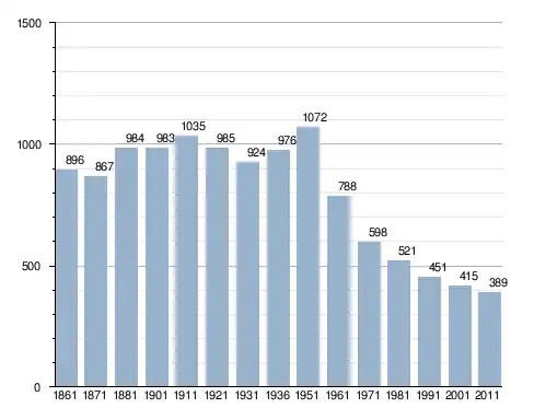 في سنة 1861 بلغ عدد السكان 896 نسمة، وتطور العدد ليصل في سنة 2011 لـ 389 نسمة.