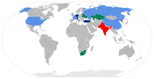الدول النووية الموقعة على معاهدة الحد من انتشار الأسلحة النووية- (روسيا، الصين، فرنسا، المملكة المتحدة، الولايات المتحدة)