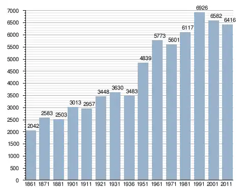 في سنة 1861 بلغ عدد السكان 2٬042 نسمة، وتطور العدد ليصل في سنة 2011 لـ 6٬416 نسمة.