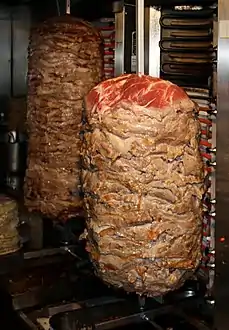 دونر كباب هو نوع من الكباب، مصنوع من اللحم المطبوخ على المشواة العموديّة.[1] يُقلّب اللحم المتبّل والمكدّس على شكل مخروط مقلوب ببطء على المشواة بجوار عنصر الطهي العموديّ. ثمّ تُقطّع الطبقة الخارجيّة إلى شرائح رقيقة أثناء الطهي.