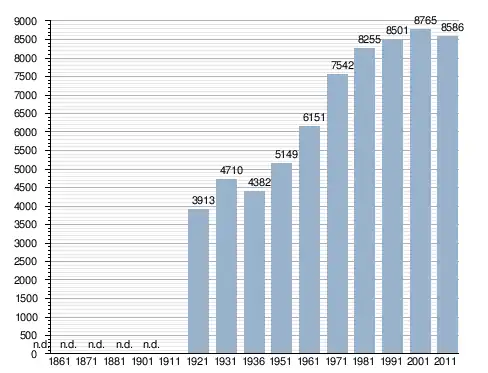 في سنة 1871 بلغ عدد السكان نسمة، وتطور العدد ليصل في سنة 2011 لـ 8٬586 نسمة.