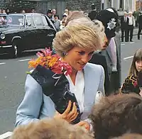 ديانا أميرة ويلز (ديانا فرانسيس سبنسر، 1 يوليو 1961 - 31 أغسطس 1997) كانت الزوجة الأولى لتشارلز أمير ويلز وهو الابن الأكبر والوريث الظاهري للملكة إليزابيث الثانية.[12]