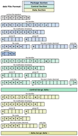 منذ دبيان 0،93, تحتوي حزمة دبيان على ثلاثة ملفات أرشيف: