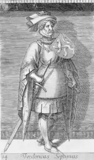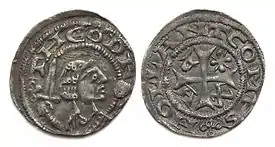 مقاطعة هولندا، بنس من الفضة أو 'kopje'، وعليه نقش تمثال نصفي لديريك السابع