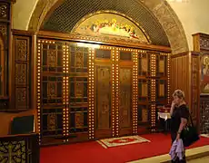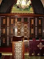 هيكل الكنيسة له حجاب خشبي يرجع لعام 1866، أما قبة الهيكل فهي قبة نصف كروية تحملها أربعة مقببات، كل منها له ثلاثة أطراف.[102] ولقد بُنيت هذه الكنيسة حوالي عام 528 في عهد البابا ثيودؤسيوس الأول، وتم تكريسها في عهد البابا بنيامين الثاني في القرن السابع، ولكنها تداعت للسقوط فجُدِدت في القرن الثامن عشر.[103]