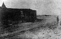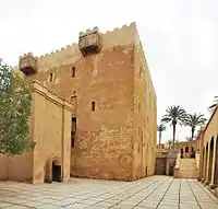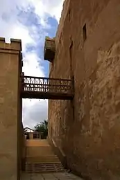 حصن الدير عبارة عن بناء مربع الشكل طول ضلعه الواحد 21.5 متر، وارتفاعه 16 متر، وجدرانه مبنية من كتل حجرية ضخمة غير مصقولة، ومكسُوَّة من الخارج بطبقة من الجص.[76]