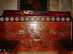 بالأسفل: رفات تسعة بطاركة في الصندوق الخشبي.