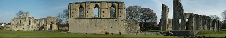 تأسس الدير في القرن السابع الميلادي، وتم توسعته في القرن العاشر، قبل أن يدمره حريق هائل عام 1184. بعد ذلك، أعيد بناء الدير، وبحلول القرن الرابع عشر، أصبح الدير أحد أغنى وأكثر الأديرة تأثيرًا في إنجلترا، كما سيطر الدير على مساحات شاسعة من الأراضي المحيطة. وفي عام 1539، هدم الدير وفقًا لسياسة حل الأديرة التي انتهجها الملك هنري الثامن ملك إنجلترا، وتعرض آخر رئيس للدير ريتشارد ويتنغ، للإعدام والسحل وتقطيع أواصره بعد اتهامه بالخيانة.