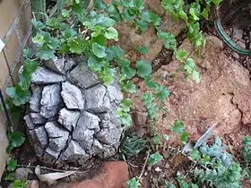 The large tuberous stem of Dioscorea elephantipes at the botanical garden of Villa Durazzo-Pallavicini, Genova Pegli.