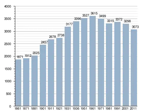 في سنة 1861 بلغ عدد السكان 1٬871 نسمة، وتطور العدد ليصل في سنة 2011 لـ 3٬073 نسمة.