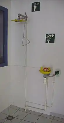 تعباً مادة الديفوتيرين في أنواع مختلفة من العبوات منها غسول للعين (في حالة تعرض العين لمادة كيميائية أكالة أو مهيجة) وجهاز الغسل المحمول (الذي يتوفر في عدة أحجام أكبرها بحجم طفاية الحريق).