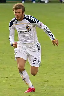 ديفيد بيكهام (بالإنجليزية: David Beckham)، (مواليد 2 مايو 1975) لاعب كرة قدم سابق كان يلعب كلاعب وسط وكجناح في نفس الوقت وقد كان يلعب في ريال مدريد الإسباني بعد أن انتقل إليه قادما من مانشستر يونايتد الإنجليزي، لعب في نادي لوس أنجلوس جلاكسي وقام النادي بإعارته إلى نادي اي سي ميلان عام 2009 و2010 وفي 2013 إنتقل إلى باريس سان جيرمان ل6 أشهر حتى أعلن إعتزاله نهاية الموسم. تزوج من مغنية البوب فكتوريا بيكهام التي كانت مع فرقة سبايس غيرلز. محترفا مع مانشستر عام 1993 واستمر معهم لمدة 10 سنوات حقق فيها العديد من البطولات المحلية والقارية. في عام 2003، انتقل إلى نادي ريال مدريد الإسباني وحقق معهم بطولة الدوري الأسباني لموسم 2006 - 2007. وقد اختاره بيليه ضمن قائمة أفضل 125 لاعب حي في مارس 2004. وُصِف في 2002 بأنه أكثر رجل "متروسكشوال" بواسطة الرجل الذي اخترع هذا المصطلح.[5][6] كما وصف بهذا المصطلح بواسطة مقالات كثيرة بعدها.
