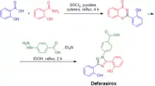 |CitationClass=تم تجاهله (مساعدة) Free full text نسخة محفوظة 29 أبريل 2014 على موقع واي باك مشين. - Yang LP, Keam SJ, Keating GM (2007). "Deferasirox : a review of its use in the management of transfusional chronic iron overload". Drugs. 67 (15): 2211–30. doi:10.2165/00003495-200767150-00007. PMID 17927285. الوسيط