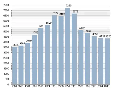في سنة 1861 بلغ عدد السكان 3٬525 نسمة، وتطور العدد ليصل في سنة 2011 لـ 4٬325 نسمة.