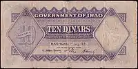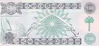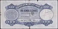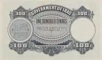 100 دينار وأصدر عام 1939 | أصفر وأخضر وبني غامق | الملك فيصل الثاني | |