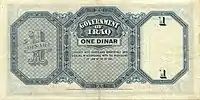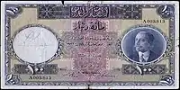 100 دينار وأصدر عام 1932 | أصفر وأحمر وأسود | الملك فيصل الأول | |