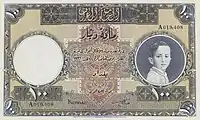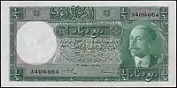 1 دينار وأصدر عام 1939 | أخضر وبني غامق | الملك فيصل الثاني | |