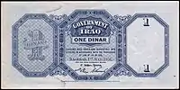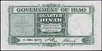 1 دينار وأصدر عام 1959 | أزرق | شعار الجمهورية | قيثارة سومرية |