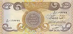 الدينار العراقي هو العملة الرسمية في العراق ويصدر من قبل البنك المركزي العراقي، وينقسم الدينار إلى 1,000 فلس إلا أن معدلات التضخم العالية في أواخر القرن العشرين تسببت في هجر القطع المعدنية من المسكوكات والتي سكت بفئة الفلس الواحد حيث أصبحت خارج التداول حالياً.