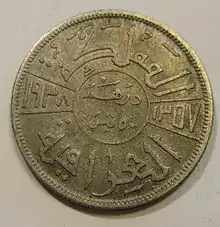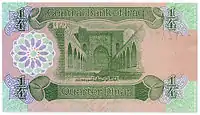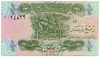 | ربع دينار وأصدر عام 1973 | أخضر فاتح | سايلو البصرة | نخيل | ||