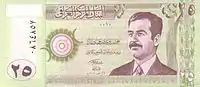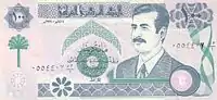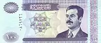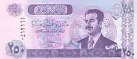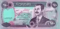 معظم الأوراق النقدية الصادرة في هذه الفترة تحمل صورة الرئيس الأسبق صدام حسين.