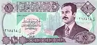 عشرة دنانير وأصدر عام 1992 | أزرق وأخضر | صدام حسين | الثور المجنح |
