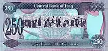 مائتان وخمسون دينار وأصدر عام 1995 | بنفسجي | صدام حسين | نصب ساحة التحرير في بغداد |
