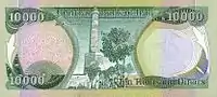 10,000 دينار | أخضر | جدارية جواد سليم (نصب الحرية) في ساحة التحرير | منارة الحدباء في الموصل | |