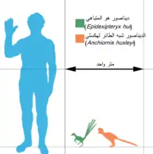 كانت أصغر الديناصورات، باستثناء الطيور المعاصرة، تصل إلى حجم الحمام المستأنس.[75] ومن الديناصورات الصغيرة المميزة: الديناصور شبه الطائر أنتشيورنيس والديناصور المتباهي إيبيدكسيبتركس، الذان لا يفوق طول هيكلهما العظمي 35 سنتيمترًا (1.1 قدم).[75][76] يُعتبر الأنتشيورنيس أصغر الديناصورات حجمًا حاليًا بعد أن وُصفت عينة تعود لفرد بالغ قُدّر وزنه بحوالي 110 غرامات.[76] تشمل قائمة أصغر الديناصورات العاشبة: الديناصور صغير القرون ميكروسيراتوس، وديناصور ونان ونّانوصور، حيث يصل طول كل منهما إلى حوالي 60 سنتيمترًا (قدمين) فقط.[77][78]