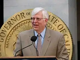 ![]() دينيس براجر يتحدث في مبنى كاليفورنيا كابيتال سنة 2008م . | |