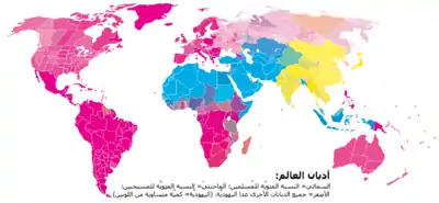 | الإسلام | 1.5مليار – 1.6 مليار[26] | 22% – 23% | الإسلام حسب الدولة |