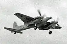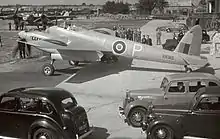 Sea Hornet NF.21 of the Airwork FRU displayed at RNAS Stretton in 1955. The radar thimble nose of this variant is evident