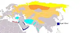 ![]() الموطن الحالي للذئب العربي | |