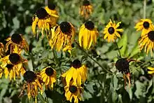 أزهار ذابلة لنبات دوار الشمس بسبب قيظ الصيف.