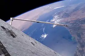 من المخط له يقاء ذراع نظام الاستشعار على محطة الفضاء الدولية خلال بعثة المكوك إليها ، البعثة STS-134 . [1]