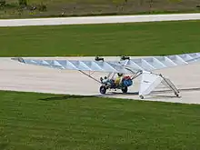An Ultraflight Lazair showing its inverted V-tail covered with translucent فلوريد متعدد الفاينيل