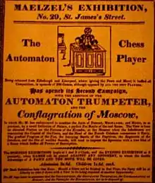 - Edgar Allan Poe, "Maelzel's Chess-Player," Southern Literary Journal, April 1836; available on the internet via the Edgar Allan Poe Society of Baltimore, Maryland, URL accessed 19 December 2006. نسخة محفوظة 13 أغسطس 2018 على موقع واي باك مشين.