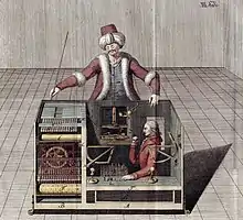 التورك, التركي, التركي الميكانيكي, الأوتوماتون لاعب الشطرنج (بالأنجليزية: The Turk,بالألمانية: Schachtürke، "التركي لاعب الشطرنج"'بالمجرية: A Török) كانت ماكينة خادعة تلعب الشطرنج، بـُنيت في القرن 18. من 1770 حتى دمرها حريق في 1854، عرضها ملاكها العديدون كأوتوماتون، بالرغم من أنها شـُرحت في مطلع عقد 1820 على أنها كانت خدعة hoax معقدة,[1] وبناها وأظهرها على الملأ في 1770 فولفغانغ فون كيمبلين (1734–1804) ليبهر الامبراطورة ماريا تريزا، الآلية بدت قادرة على لعب مباراة شطرنج قوية ضد خصومها البشريين، كما كانت قادرة على أداء جولة حصان الشطرنج، وهي أحجية تتطلب من اللاعب أن يحرك الحصان ليحتل كل مربع في رقعة الشطرنج مرة واحدة فقط.