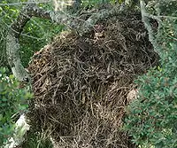 تعتبر تلك الطيور بناءة أعشاش قاهرة القوة، حيث تبني من 3 إلى 5 أعشاش في العام سواء تكاثرت أم لم تتكاثر. ويجبر كل من البومة المصاصة وبعفة تلك الطيور على ترك أعشاشها وتقوم بأخذها، ولكن بعد ترك البوم للأعشاش من الممكن أن تعود الطيور مطرقية الرؤوس لاستخدامها.[5] تعيش الثعابين، والثدييات الصغيرة كـالرباح، والعديد من الطيور المختلفة في أعشاش مهجورة، وقد توصل الحباك، وطائر الزرزور الكبير، والحمام أعشاشها بالخارج.[7]