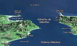 على ساحل رأس سبارتيل جزيرة مغمورة بالمياه، يعتقد البعض أنّها الجزيرة الأسطورية أطلانطس، في حين يعتقد آخرون أنّها في مكان آخر من المضيق.