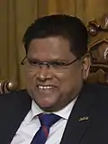 الرئيس الحالي هو تشان سانتوخي، رئيس سابق للشرطة. ينتمي إلى حزب الإصلاح التقدمي (VHP). انتُخب سانتوخي في 13 يوليو 2020 كرئيس بالتزكية في انتخابات غير متنازع عليها ، [1] وافتتحت في 16 يوليو في ميدان أونافهانكيليخيد في باراماريبو في حفل بدون حضور عام بسبب وباء كورونا.[2][3]