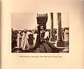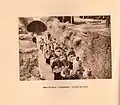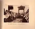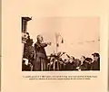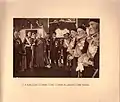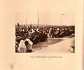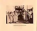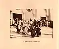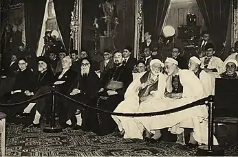 الكاردينال ليبيسيي في استقبال أحمد باشا باي الثاني وباقي أمراء الأسرة الحسينية عن يساره والمقيم العام الفرنسي فرنسوا منسيرون عن يمينه، وولي العهد محمد المنصف باي والوزير الأكبر للملكة خليل بوحاجب من خلفه.