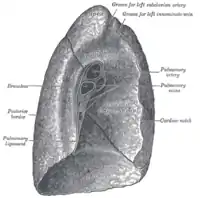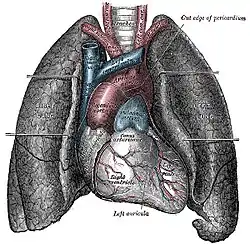 ![]() تحيط رئتا الإنسان بالقلب والأوعية الكبيرة في الجوف الصدري تحيط رئتا الإنسان بالقلب والأوعية الكبيرة في الجوف الصدري | |