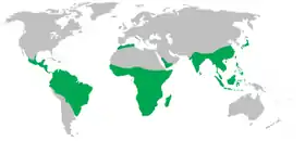 ![]() موطن الرئيسيات غير البشرية الباقية (بالأخضر) | |