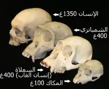 - دماغ كبير بالمقارنة مع حجم الجسم، وخاصة في السعالي؛[55]