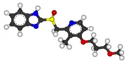 رابيبرازول Rabeprazole هو مُثَبِّطٌ انتقائي لمضخَّة البروتون Proton-Pump Inhibitor، يُفيد في تَقليل حُموضَة المعدَة ومعالجة القرحات الهضميَّة والتهاب المعدة.[2][3][4]