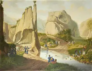 Javanese Landscape, with Tigers Listening to the Sound of a Travelling Group (1849)